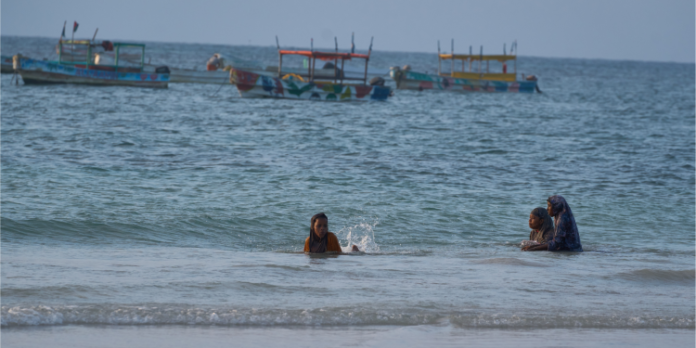 “Today, I won’t swim. I came here with my three sisters, and I have decided to stand guard. Some boys have no respect—they forcefully drag women in the water or even try to pull off their clothes. Just a few days ago, I witnessed an incident where a young girl was harassed, and her clothes were torn in the middle of the sea. It was disturbing,” Mahad said.