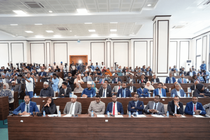 Kulanka wadajir ah ee labada Aqal Baarlamaanka Federaalka Soomaaliya ayaa barqonimadii maanta si bilaa buuq ah uga furmay Xarunta Villa Hargaysa oo si kumeel-gaar ah uu ugu shaqeeyo Golaha Shacabka.