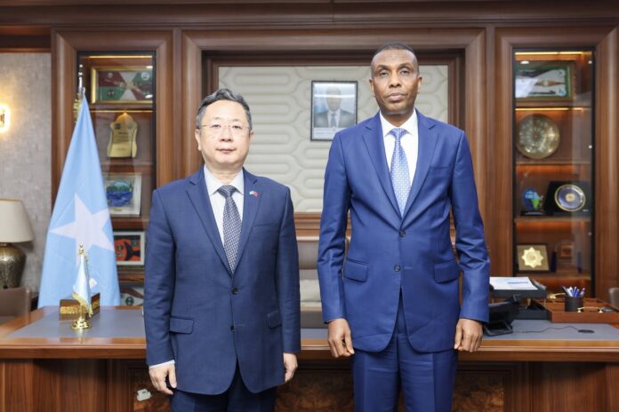 Ra’iisul Wasaaraha Xukuumadda Federaalka Soomaaliya, Xamsa Cabdi Barre, ayaa xafiiskiisa ku qaabilay Danjiraha Dowladda Shiinaha u fadhiya Soomaaliya, Danjire Wang Yu.