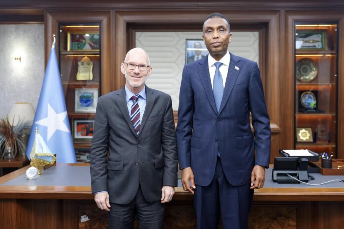 Ra’iisul Wasaaraha Xukuumadda  Federaalka Soomaaliya Xamsa Cabdi Barre, ayaa xafiiska ku qaabilay Ku-simaha Ergeyga Gaarka ah ee Xoghayaha Guud ee Qaramada Midoobay u qaabilsan Soomaaliya Danjire James Swan.