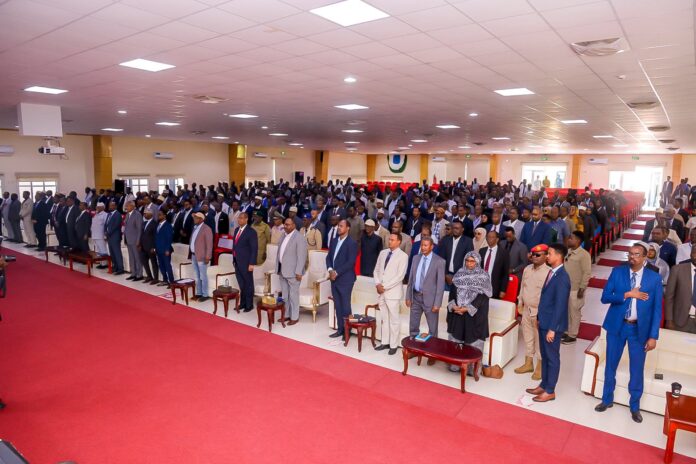 Madaxweynaha Dowladda Puntland H.E Said Abdullahi Deni oo uu weheliyo Madaxweyne Ku-xigeenka Dowladda H.E Ilyas Osman Lugatoor, ayaa maanta furay Shirweynaha maamul-baahinta Dowladda Puntland, muddo labo maalmood ah ka socon doona xarunta Madaxtooyada ee caasimada Garoowe.