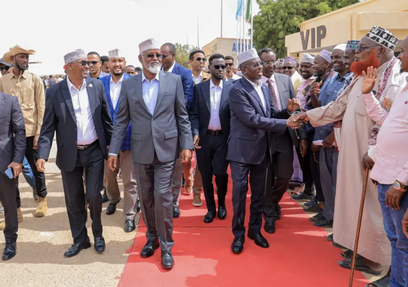 Madaxweynaha Jubaland Axmed Madoobe iyo masuuliyiin kale ayaa kusoo dhaweeyay garoonka diyaaradaha ee Kismaayo.