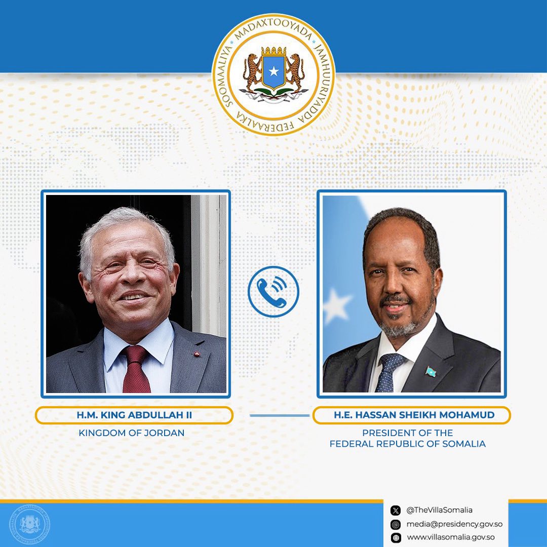 Madaxweynaha Jamhuuriyadda Federaalka Soomaaliya Mudane Xasan Sheekh Maxamuud ayaa dhanka telefoonka kula hadlay Boqor Cabdalla binu Al-Xuseen, Boqorka Urdun iyo Sheekh Tamiim binu Xamad, Amiirka Dowladda aan walaalaha nahay ee Qatar.