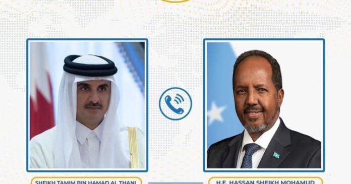 Madaxweynaha Jamhuuriyadda Federaalka Soomaaliya, Mudane Dr. Xasan Sheekh Maxamuud ayaa maanta khadka telefoonka kula hadlay Amiirka Dowladda Qatar, Mudane Sheekh Tamim Bin Hamad Al Thani.