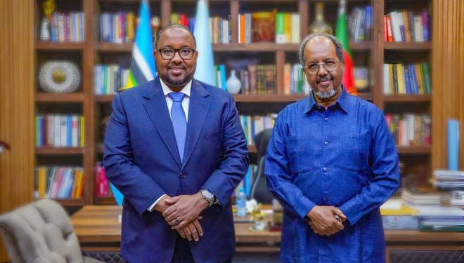 Madaxweynaha dowladda Fedaraalka Soomaaliya Xasan Sheekh Maxamuud ayaa maanta xarunta madaxtooyada dalka ku qaabilay hoggaamiyaha maamulka SSC Khaatumo Cabdiqaadir Axmed Aw Cali Firdhiye oo dhawaan Muqdisho uga qeyb galay Shirkii Golaha Wadatashiga Qaranka.
