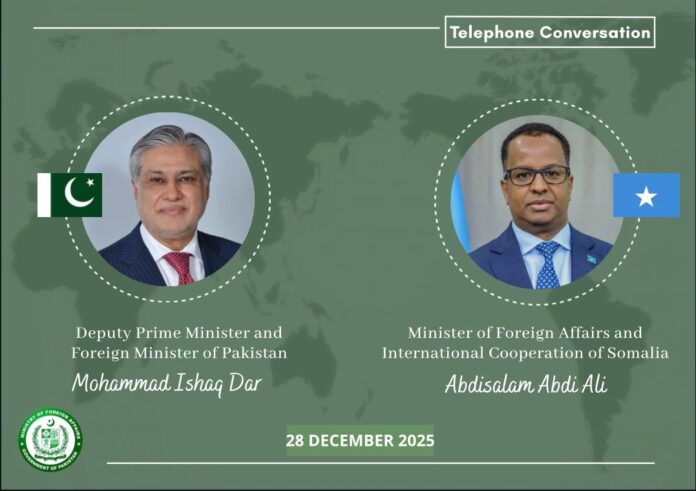 Wasiirka Arrimaha Dibadda iyo Iskaashiga Caalamiga ah ee Soomaaliya, Cabdisalaam Cabdi Cali ayaa khadka telefoonka kula hadlay Ra’iisul Wasaare ku-xigeenka ahna Wasiirka Arrimaha Dibadda ee Pakistan, Senatar Maxamed Ishaq Dar.