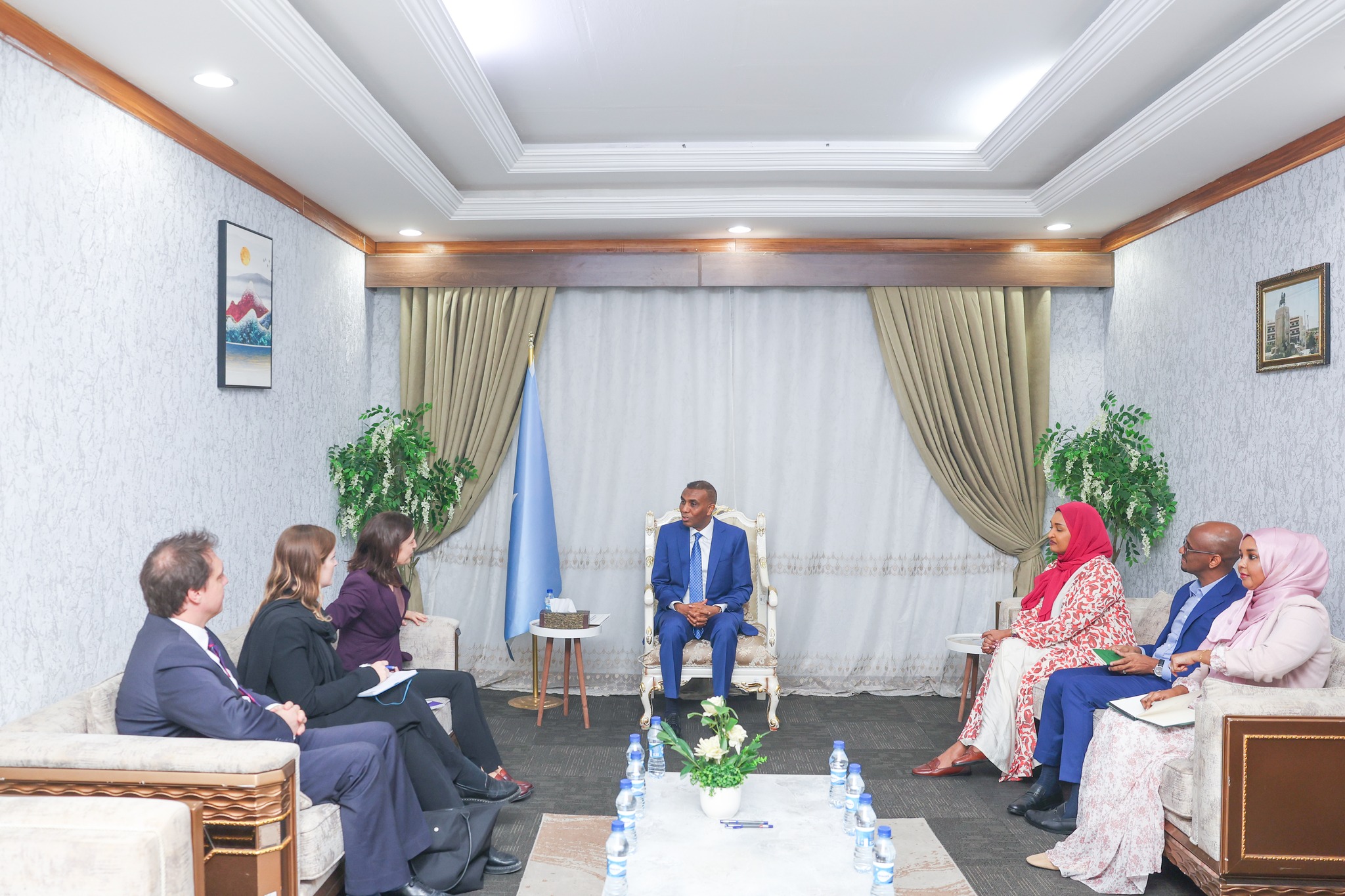 Ra’iisul Wasaaraha Xukuumadda Jamhuuriyadda Federaalka Soomaaliya, Mudane Xamsa Cabdi Barre, ayaa xafiiskiisa ku qaabilay wafdi ka socday dowladda UK oo ay hoggaaminaysay Danjiraha Boqortooyada Ingiriiska u qaabilsan Xuquuqda Aadanaha, ahna Ku-xigeenka Wakiilka Joogtada ah ee UK ee Geneva, Marwo Eleanor Sanders.
