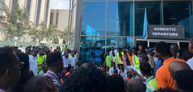 Shaqaalaha Garoonka Diyaaradaha Aden Cadde oo Shaqo Joojin Sameeyay