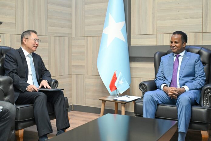 Wasiirka Wasaaradda Arrimaha Dibadda Soomaaliya, Cabdisalaam Cali Dhaay ayaa maanta kulan gaar ah la yeeshay Ergayga Gaarka ah ee Shiinaha u qaabilsan Geeska Afrika, Hu Changchun.