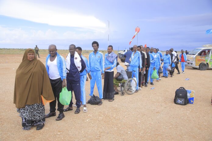 Maamulka SSC-Khaatumo ayaa ku wareejiyay Dowladda Federaalka Soomaaliya 25 maxbuus oo ka mid ah Maxaabiista u xirnaa colaadihii gobolka ka dhacay sanadkii 2023 kuwaasi oo loo qaaday magaalada Muqadisho.